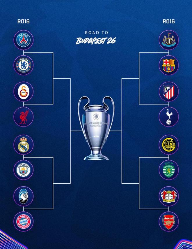 北京时间2月27日晚,抽签仪式在欧足联总部完成,十六强全部出炉。没有任何原则回避,同国球队可以内战,豪门可以提前相遇。结果不出意外火星四溅:三组重磅对决瞬间点燃:欧洲皇马VS曼城、巴黎VS切尔西、巴萨VS纽卡斯尔。