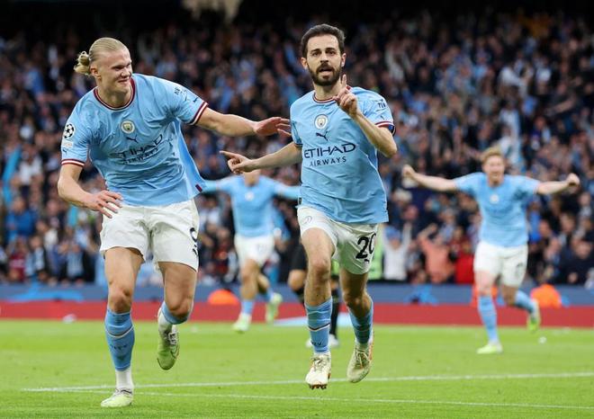 也正是那次刻骨铭心的失利,让曼城最终决定锋线大换血。他们送走了和两大正值当打之年、也曾为球队立下赫赫功勋的前锋,签下了挪威中锋。2022/23赛季的欧冠半决赛,曼城与皇马再度遭遇。首回合较量,曼城客场1-1逼平对手。而在回到主场之后,瓜迪奥拉的球队火力全开4-0大获全胜杀进决赛,并1-0击败国米队史首次捧起欧冠联赛冠军。不仅如此,他们还将英超和足总杯揽入怀中,成就了队史首次、英格兰足球历史上第2次欧洲三冠王。
