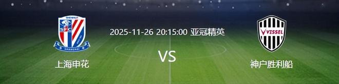 北京时间11月26日晚20:15,东亚区亚冠精英赛第5轮将上演一场令中国球迷无比关注的比赛,中超亚军上海申花坐镇主场迎战实力强劲的日本球队神户胜利船。